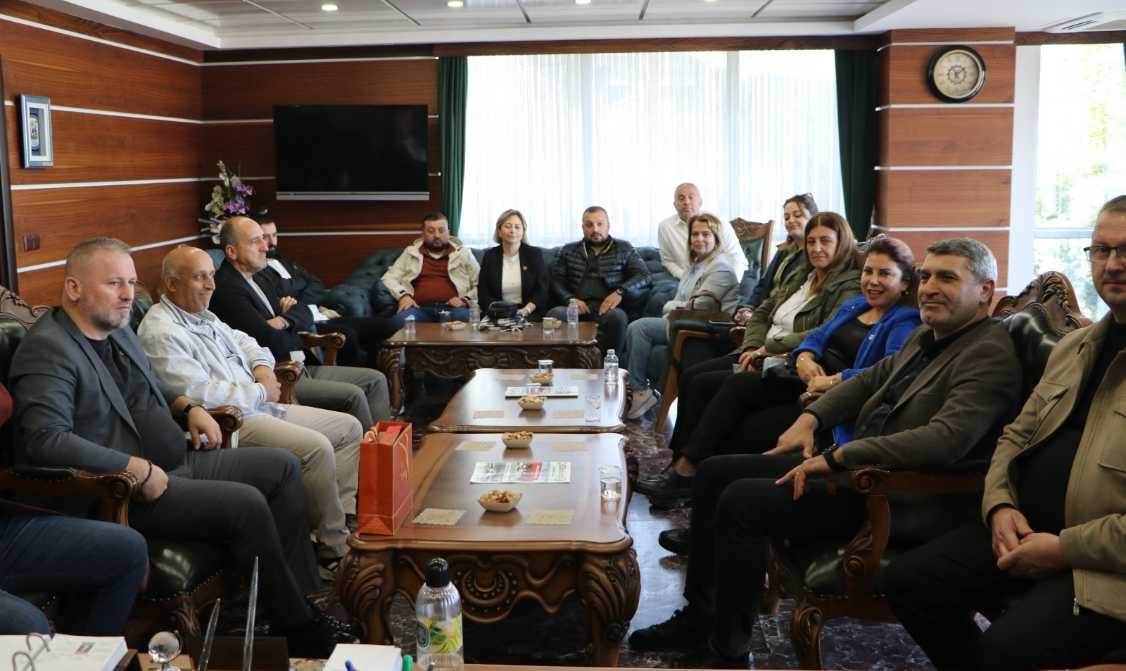 Cumhuriyet Halk Partisi (CHP) Hopa İlçe Başkanı Şükrü Aydemir ve İlçe örgütü Odamızı ziyaret ederek Yönetim Kurulu Başkanı Osman Demircioğlu ve Oda Yöneticileri ile bir araya geldi.