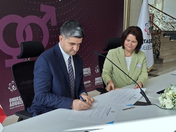 Adıgüzel, konuşmasının ardından, alkışlar arasında Avrupa Yerel Yaşamda Kadın-Erkek Eşitliği Şartı”nı imzaladı.