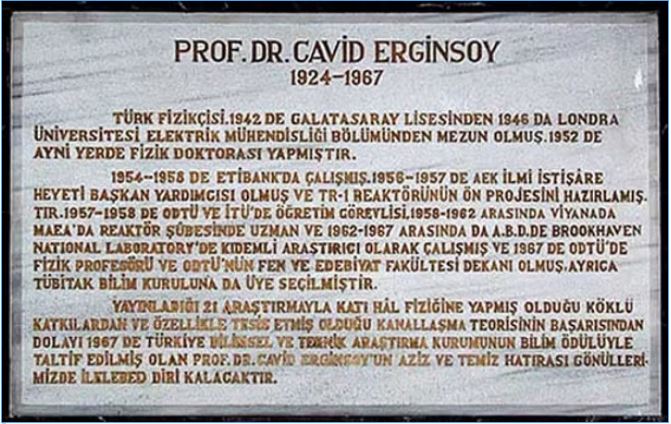 Prof. Dr. Erginsoy'un Türkiye'de ve dünyada bilim ve teknolojinin gelişmesine olan katkılarına bir şükran borcu olarak TAEK, ÇNAEM Fizik Bölümü'ne onun adı verilmiştir. Cavid Erginsoy'un kısa bir özgeçmişi, bölümün girişindeki bir taş yazma üzerinde bulunmaktadır [Murat Dirican, Bilim & Teknik, Sayı 362 (Ocak 1998) 82]. (Prof. Dr. Ali Girgin)