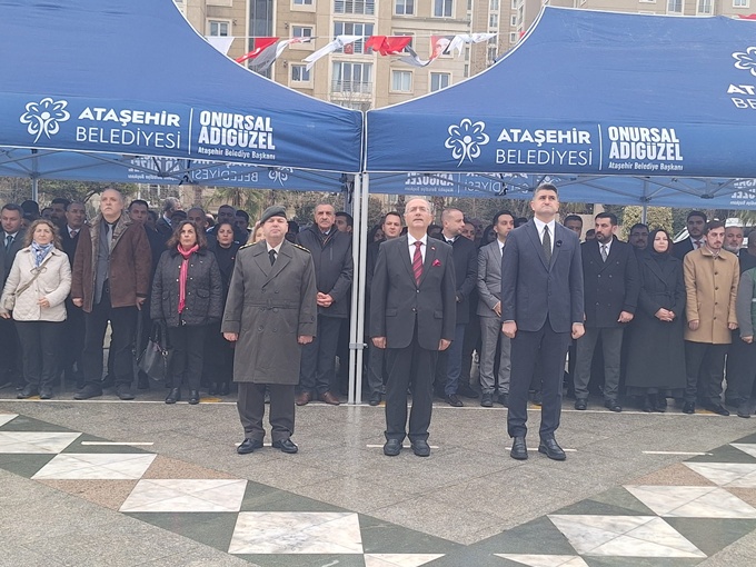İSTANBUL/ATAŞEHİR- Ataşehir Kaymakamlığı tarafından düzenlenen anma programı, Cumhuriyet Meydanı’ndaki Atatürk Anıtı’na çelenk sunulmasıyla başladı. Ataşehir Kaymakamı Bekir Dınkırcı, Garnizon Komutan Vekili İkmal Albay Asım Özakış, Ataşehir Belediye Başkanı Onursal Adıgüzel ile siyasi parti ve sivil toplum kuruluşu temsilcileri sırasıyla Anıt’a çelenk sundu. Çelenk sunumunun ardından saygı duruşu ve İstiklal Marşı’nın okunmasıyla Cumhuriyet Meydanı’ndaki tören sona erdi.