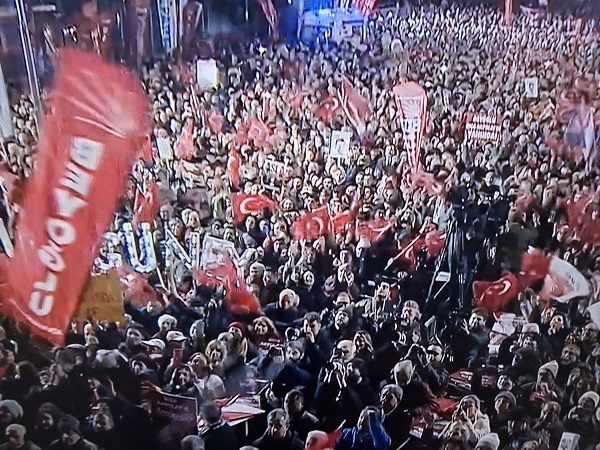 Beşiktaş Barbaros Meydanı'nda gerçekleştirilen mitinge binlerce yurttaş soğuk havaya aldırış etmeden yoğun katılım sağladı.