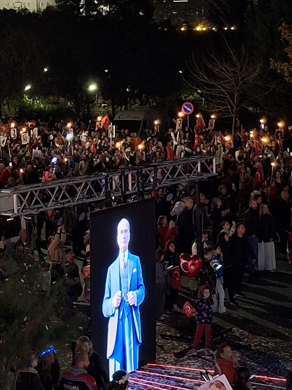 Binlerce kişinin meşaleler ve marşlar eşliğinde katıldığı Fener Alayı Yürüyüşü, Ataşehir Bulvarı 3M Migros önünden başlayıp Afet ve Acil Durum Koordinasyon Merkezi (AKOM) önünde sona erdi.