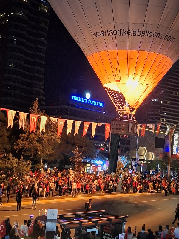 Cumhuriyet Bayramı etkinlikleri kapsamında Ataşehir’de düzenlenen sıcak hava balonu etkinliği, vatandaşların yoğun ilgisini gördü. Gökyüzünü süsleyen sıcak hava balonu ve meşalelerle Ataşehir kırmızı beyaza büründü. Etkinlik alanında toplanan vatandaşlar, gökyüzüne yükselen balonu coşkuyla izledi.