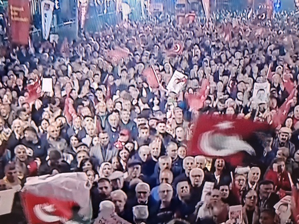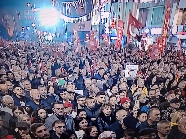 “Erdoğan’ın partisine kapatma davası açıldığında heyetler kurup, dünyayı gezip, anlatıp, ‘Türk demokrasi tarihine vurulmuş bir darbedir’ diyordu. Dünün mazlumu, dünün mağduru şimdi bugün gelmiş karşımıza bugünün zalimi olmuş. Buradan, Sultanbeyli’den, bir zamanların AK Parti’nin kalesinden bütün AK Partililerin vicdanına sesleniyorum: Parti kapatmak darbecilerin işi değil midir? Parti kapatmak senden korkanların işi değil midir? Demokratik siyaset yarışarak yapılacakken, yenemediğinin sırtını hakimlerle, savcılarla yere getirmeye çalışmak korkaklık değil midir? Bütün AK Partililere sesleniyorum: Artık Recep Tayyip Erdoğan siyasette havlu atmıştır. Kendi kadın kollarına, gençlik kollarına güvenini yitirmiştir. Yargı kollarıyla seçim kazanmaya çalışmaktadır. Bu milletin artık takdiri değil. Bu millete zorla kendini dayatmaktadır. Bunun için buradan Türkiye’deki bütün demokratlara sesleniyorum: Vakit parti kapatmalara karşı birlikte direnmek; vakit demokratik siyaseti birlikte savunmak; vakit siyasetin mertçe, dürüstçe ve serbestçe yapılmasını savunmaktır. Dün demokrasi ile gelenlerin bugün demokrasiden vazgeçmesi seçmeni de peşinden götürecekleri anlamına gelmez. Sultanbeyli’deki AK Parti’ye gönül vermiş, bu yaşananlardan utanan bütün demokratlara sesleniyorum: Yarınları sizin demokrasiye inancınızla hep birlikte kurabiliriz. Darbecilerin arkasında durmayın. Darbecilerin karşısında, demokrasinin arkasında duralım. Biz hep birlikte Türkiye’yiz. Biz Türkiye İttifakı’yız. Türkiye İttifakı renklerini ay-yıldızlı al bayraktan alır. Türkiye İttifakı kimseyi dışlamaz. Bugün ‘İyi olsun’ diye AK Parti‘ye oy vermiş, emekli maaşı 16 bin lira olan, ezilen emeklilere sesleniyorum: AK Parti tek çare, sadece oy verilecek tek parti değildir. Emekçilere sesleniyorum: AK Parti‘ye mecbur değilsiniz. Esnafa sesleniyorum: Bunlara katlanmak zorunda değilsiniz. Birlikte olacağız, güçlü olacağız, sabırlı olacağız, kararlı olacağız. Hep birlikte kurtulacağız. Kurtuluş yok tek başına. Ya hep beraber, ya hiçbirimiz.”