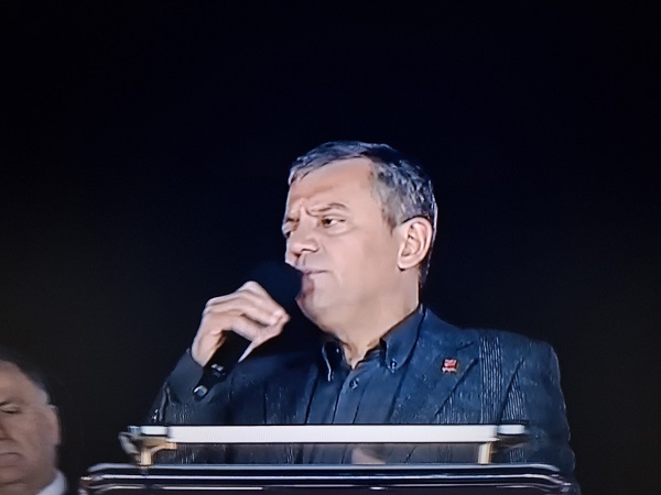 “Bu darbenin ve davanın savcısına vaktiyle eleştirilerde bulundum. Sert eleştirilerde bulundum. Kızdırdı, kötü söz de söyledik. Ama ben kimseye beddua etmedim. Bu savcının yazdığı, başsavcının savunduğu bu iddianameyi görünce kendisine şöyle söylüyorum: Allah senden razı olsun. Ben buraya çıkıp da bu iddianamenin siyasi bir iddianame olduğunu asla ve asla bu kadar güzel anlatamazdım. Diyorsun ya ‘Bunların amacı Ekrem İmamoğlu’nu Cumhuriyet Halk Partisi’nin adayı yapmak.’ Diyorsun ya ‘Bu sebepten dolayı bunların partisi kapanmalıdır.’ ‘Cumhuriyet Halk Partisi kapansın diye Yargıtay Cumhuriyet Başsavcılığı harekete geçmelidir’ diyorsun ya. İşte sen kendi ağzınla bu davanın hukuki olmadığını, Ekrem Başkan’a ve diğer arkadaşlara söylenenlerin gerçeği yansıtmadığını, amacın siyasi olduğunu, talimatın Recep Tayyip Erdoğan’dan geldiğini itiraf ediyorsun. Burada söyleyeceğim şu var: Bu parti, Tayyip Bey’in kurduğu parti gibi bir apartmanın dublex çatı katında, bir rezidansta kurulmuş, bir avukat bürosunda kurulmuş bir parti değildir. Bu parti, milli mücadelenin partisidir. Bu parti, savaş meydanlarında kurulmuştur. Bu partinin kurucusu, Gazi Mustafa Kemal Atatürk’tür. Anadolu ve Rumeli Müdafaa-i Hukuk Cemiyeti’nin birleşmesiyle oluşmuş Cumhuriyet Halk Fırkası’ndan, bu Cumhuriyet Halk Fırkası’nın mücadelesinden çok yılanlar oldu. Bizi sokmaya çalışan çok yılanlar da oldu. Bu mücadelede yılan oldu, yılmayan oldu. Gün geldi, Kenan Evren bu partiyi kapatmaya kalktı. Milletimizle birlikte yine açtık. 102 yıllık dev çınar ayakta duracaktır, düşmanların hepsi sefil olacaktır, beter olacaktır.”