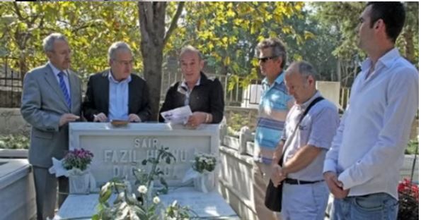 Her yıl anılan Dağlarca’nın mezarında Kadıköy Bel. Bşk. Selami Öztürk ve dostum Dr. Erdal Atabek ile…