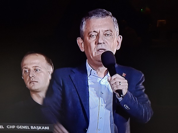 AKP'li Cumhurbaşkanı Recep Tayyip Erdoğan'ın Ocak 2025'te kullandığı "Sokağa çıkacak halleri kalmayacak" ifadelerine atıf yapan Özel, Sarıyer Meydanı'ndaki kalabalığı göstererek "Erdoğan savcıların da sen de iftiracısınız" dedi.