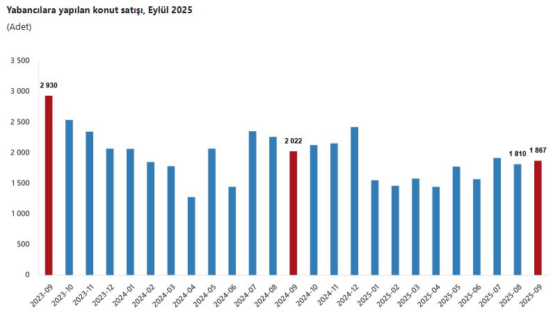 Yabancılara Eylül ayında bin 867 konut satışı gerçekleşti