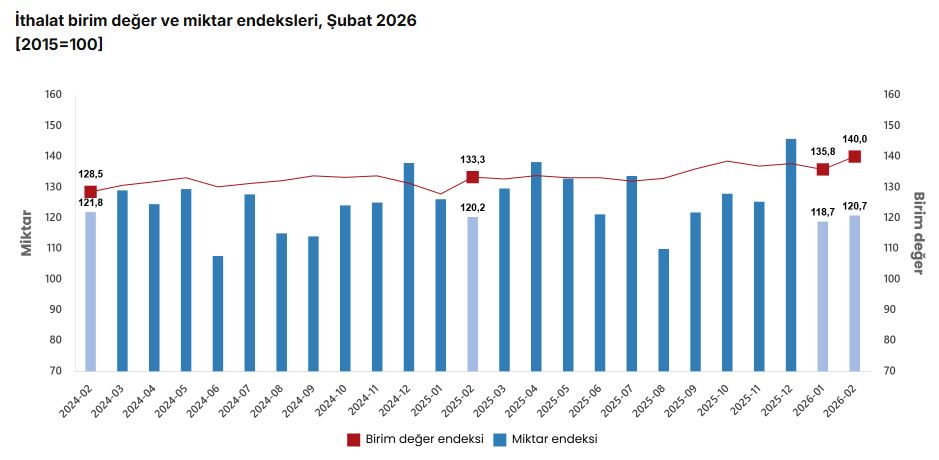 İthalat birim değer ve miktar endeksleri, Şubat 2026