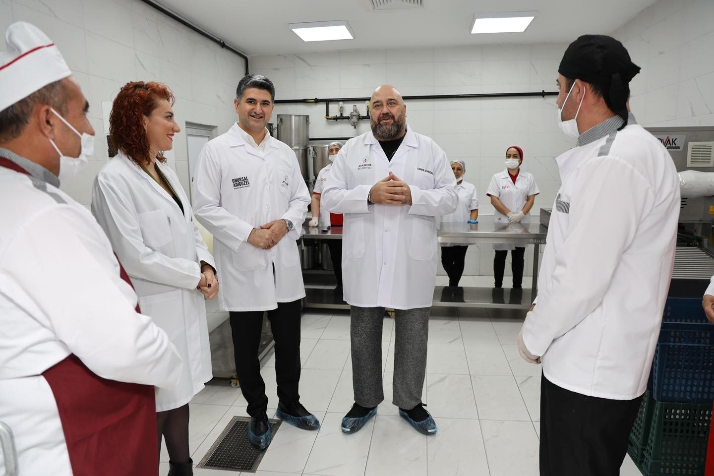 Ata Teras’ın ardından Aşevi’ni de ziyaret eden ünlü şef, Aşevi’ndeki hijyen şartları ve kullanılan gıda malzemelerine yönelik takdirlerini iletti.
